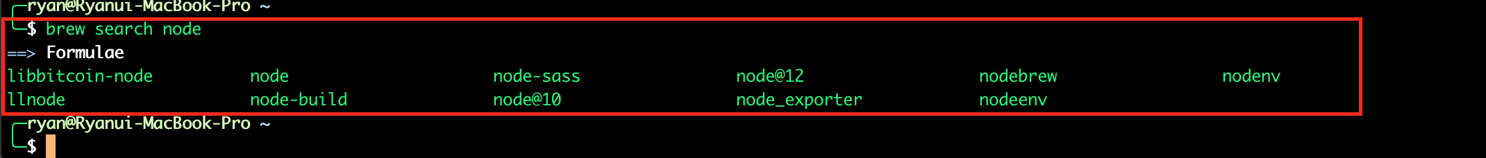 $ brew search node